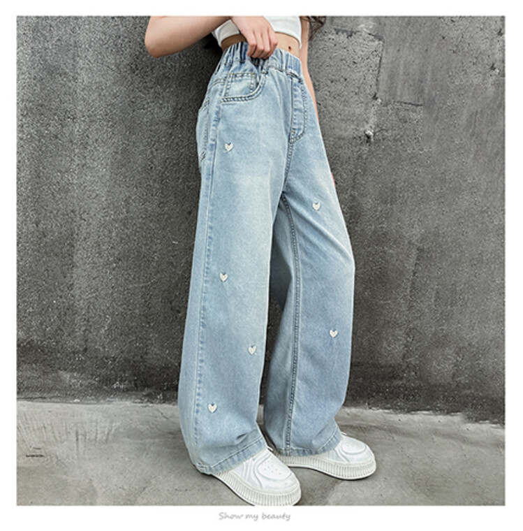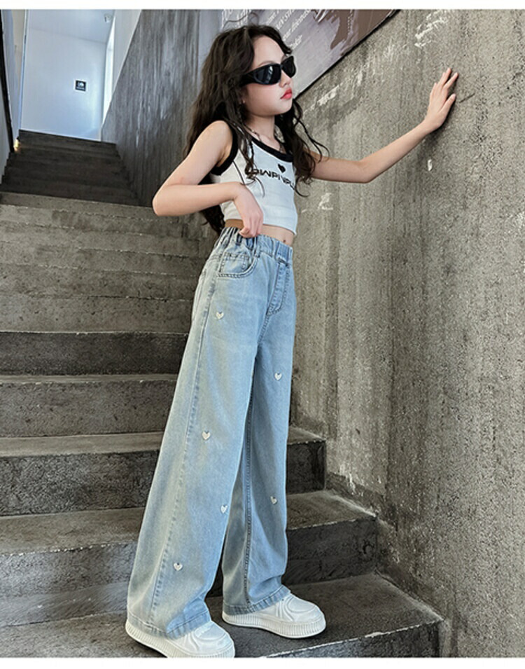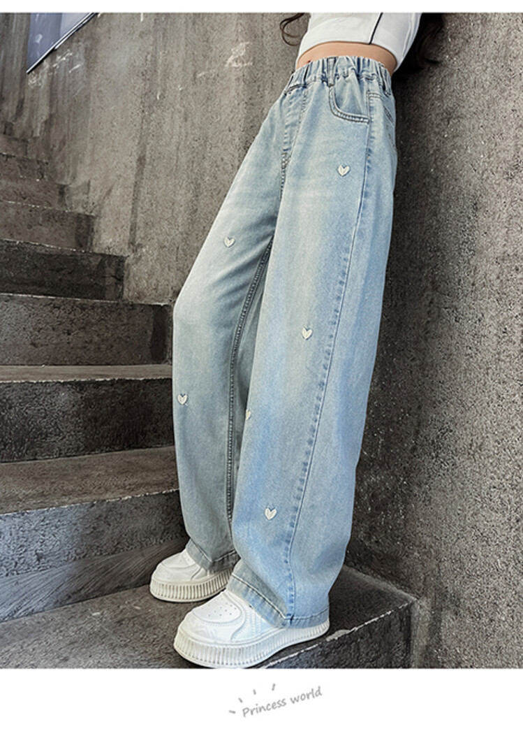 ハート刺繍 デニムパンツ キッズ ジー キッズ ボトムス パンツ 新作 120 130 140 150 160 170