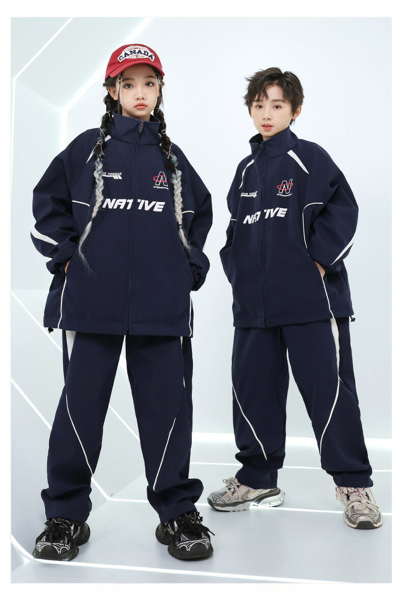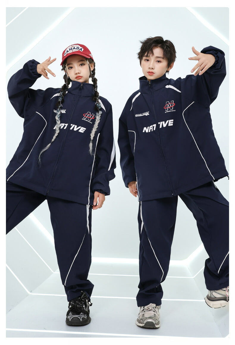 キッズ ダンス衣装 紺 ウィンドブレー キッズ スーツ カジュアルセットアップ カジュアルパンツセット 新登場! ジャケットのみ パンツのみ ジャケット+パンツ2点 110 120 130 140 150 160 170 180