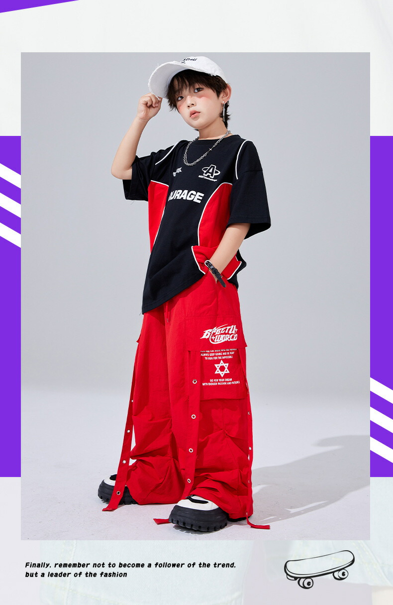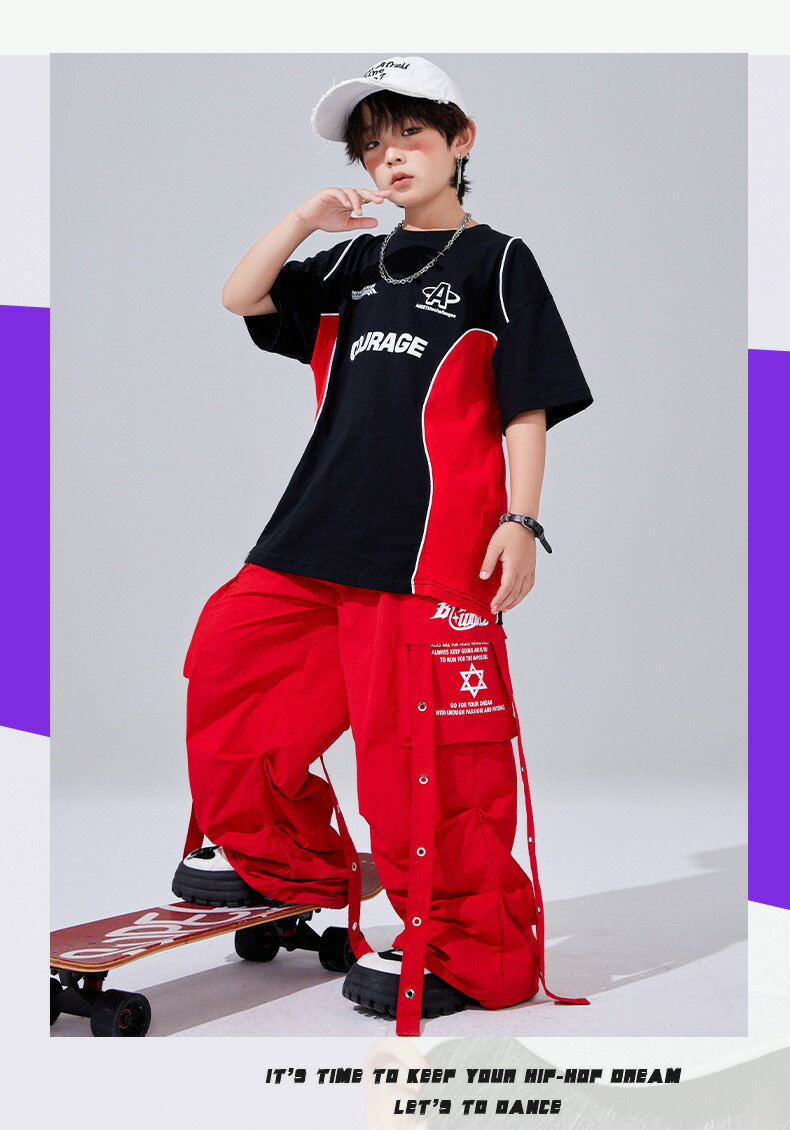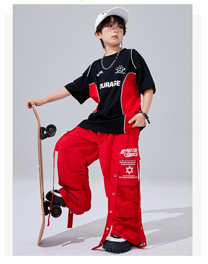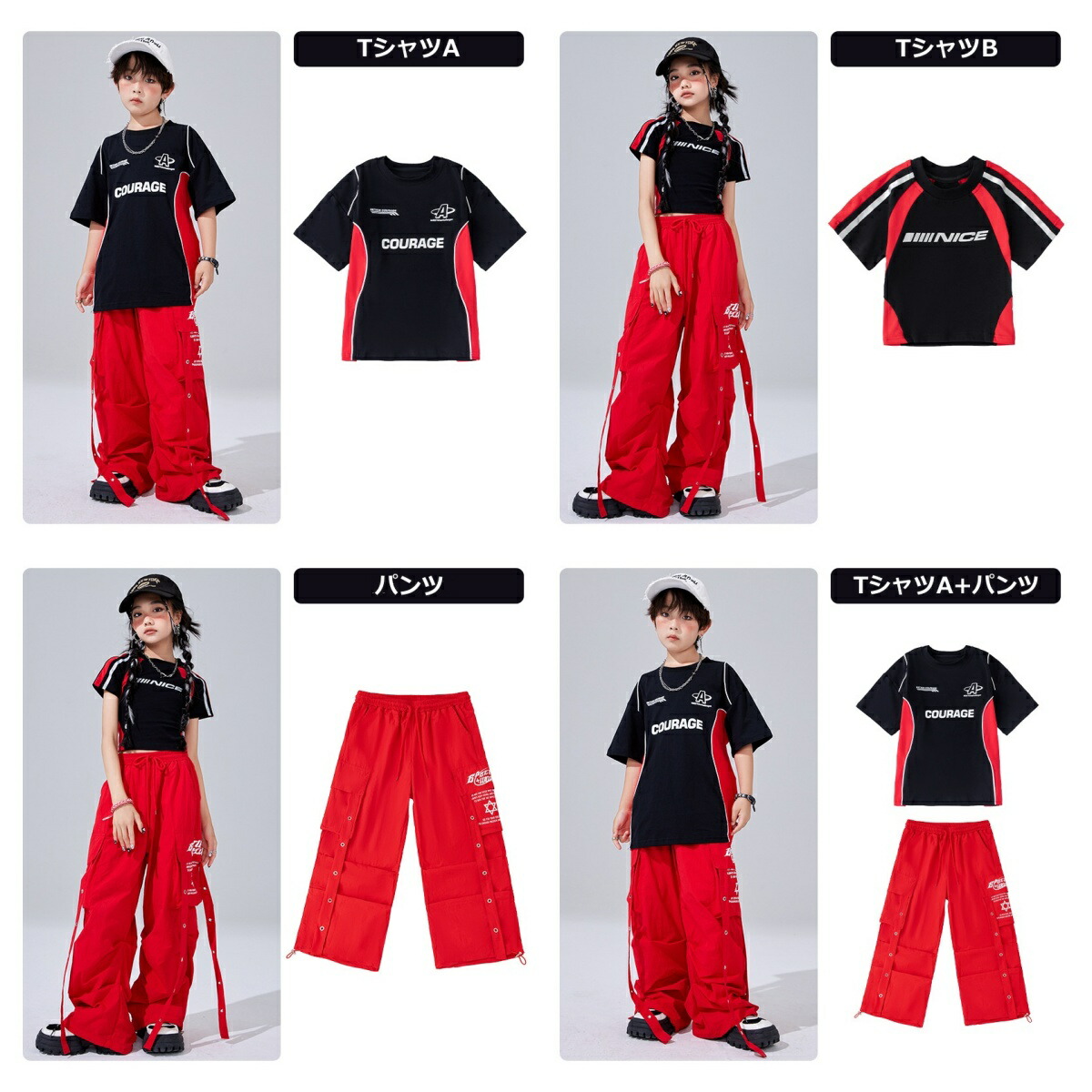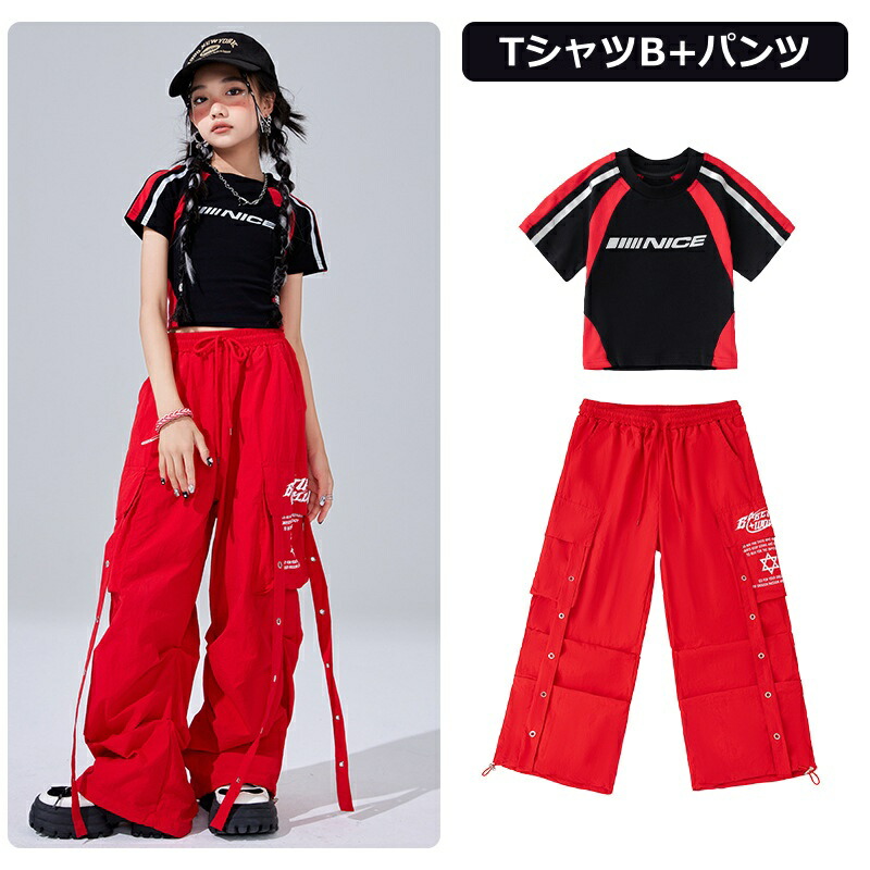 キッズ ダンス衣装 赤 セットアップ キッズ ベビー マタニティ 早い者勝ち TシャツA TシャツB パンツ TシャツA+パンツ TシャツB+パンツ 110 120 130 140 150 160 170 180
