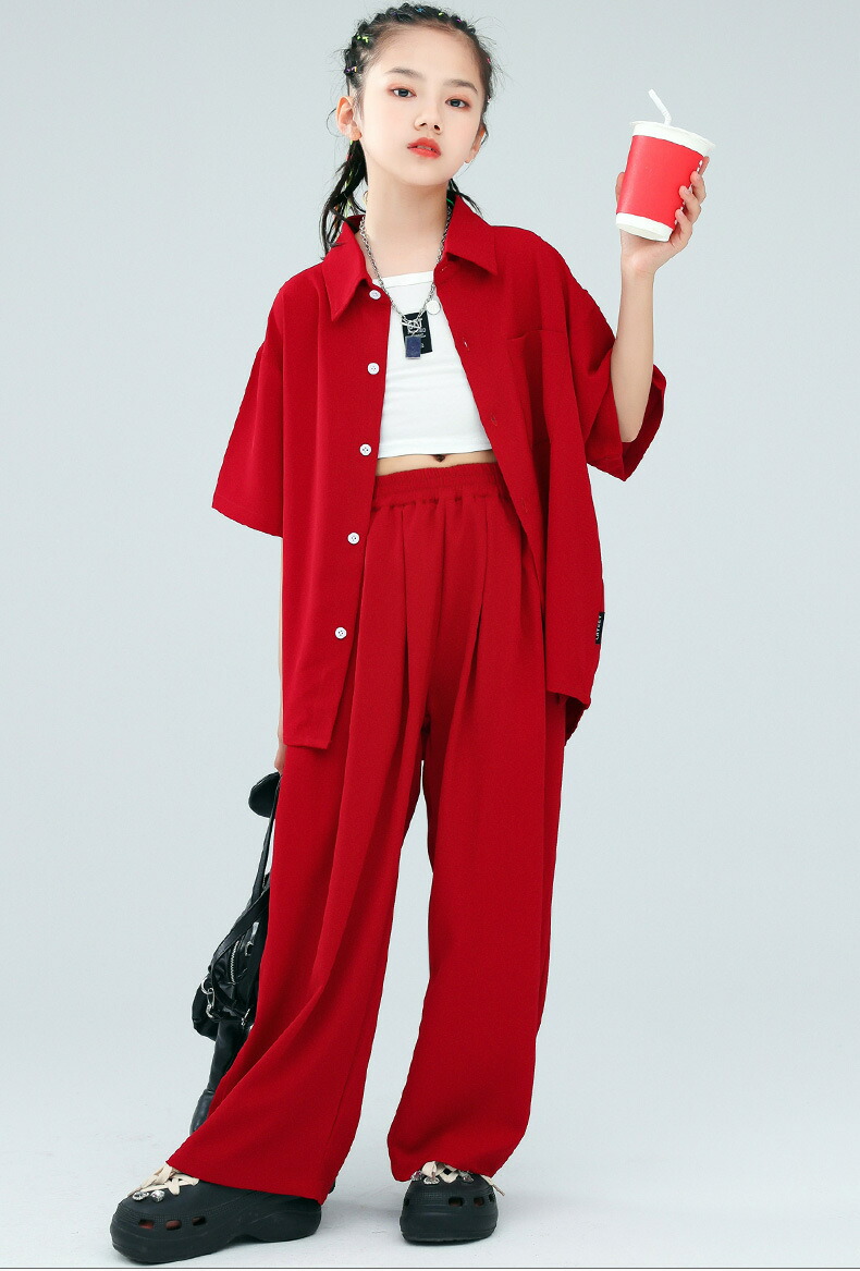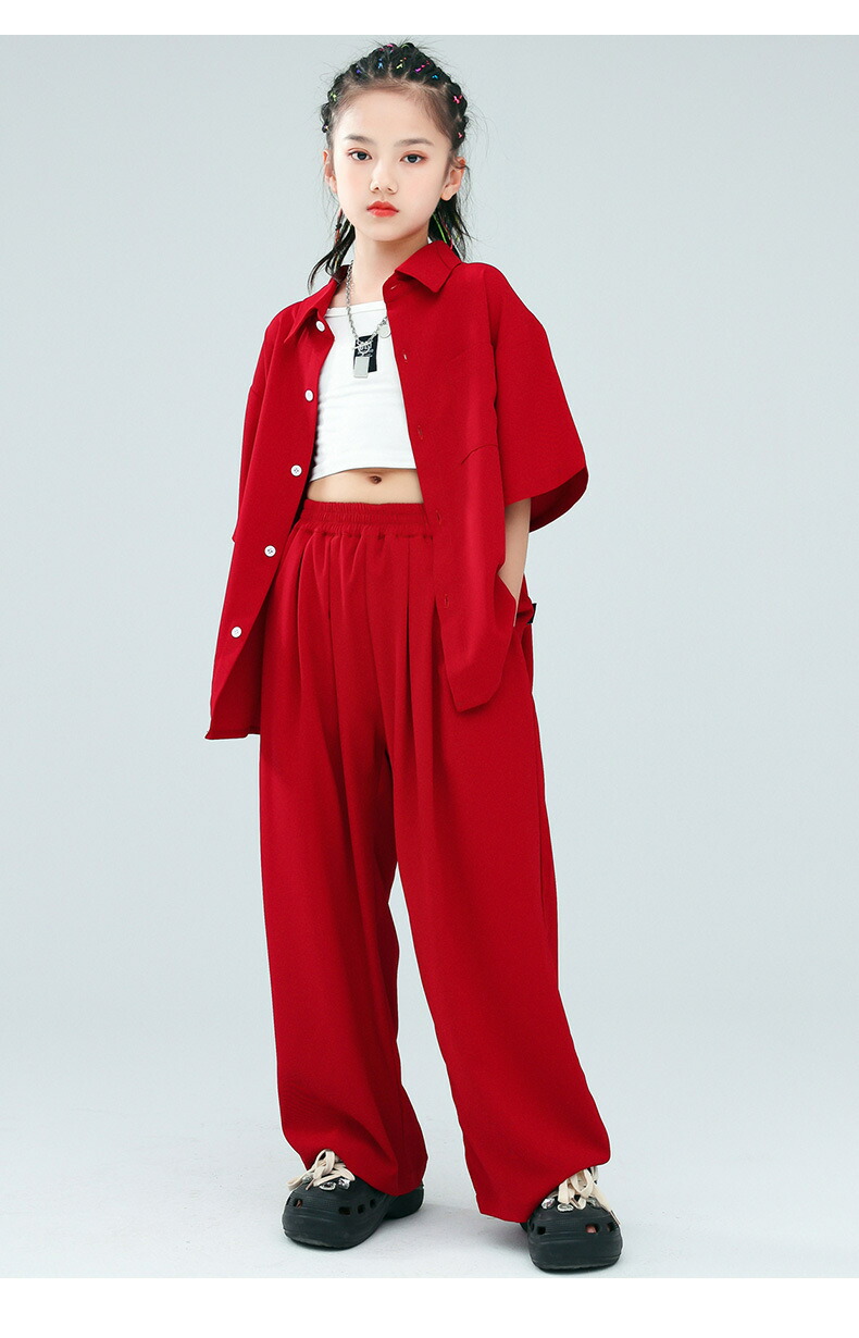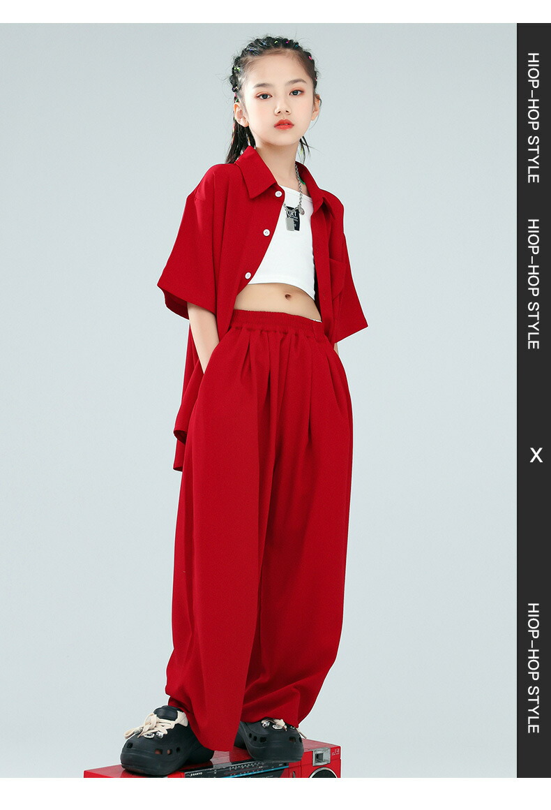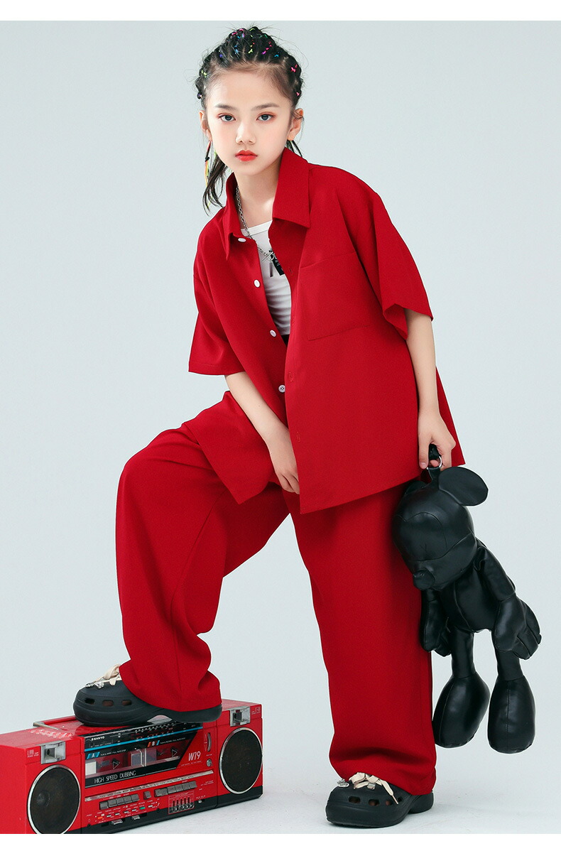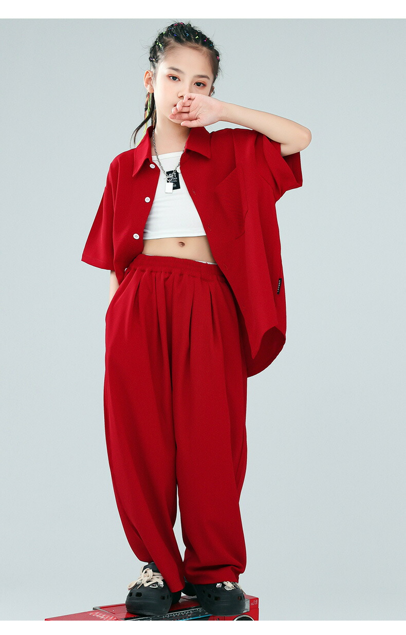 キッズ ダンス衣装 赤 レッド 半袖 キッズ ベビー マタニティ 新登場! シャツのみ パンツのみ シャツ+パンツ 110 120 130 140 150 160 170 180