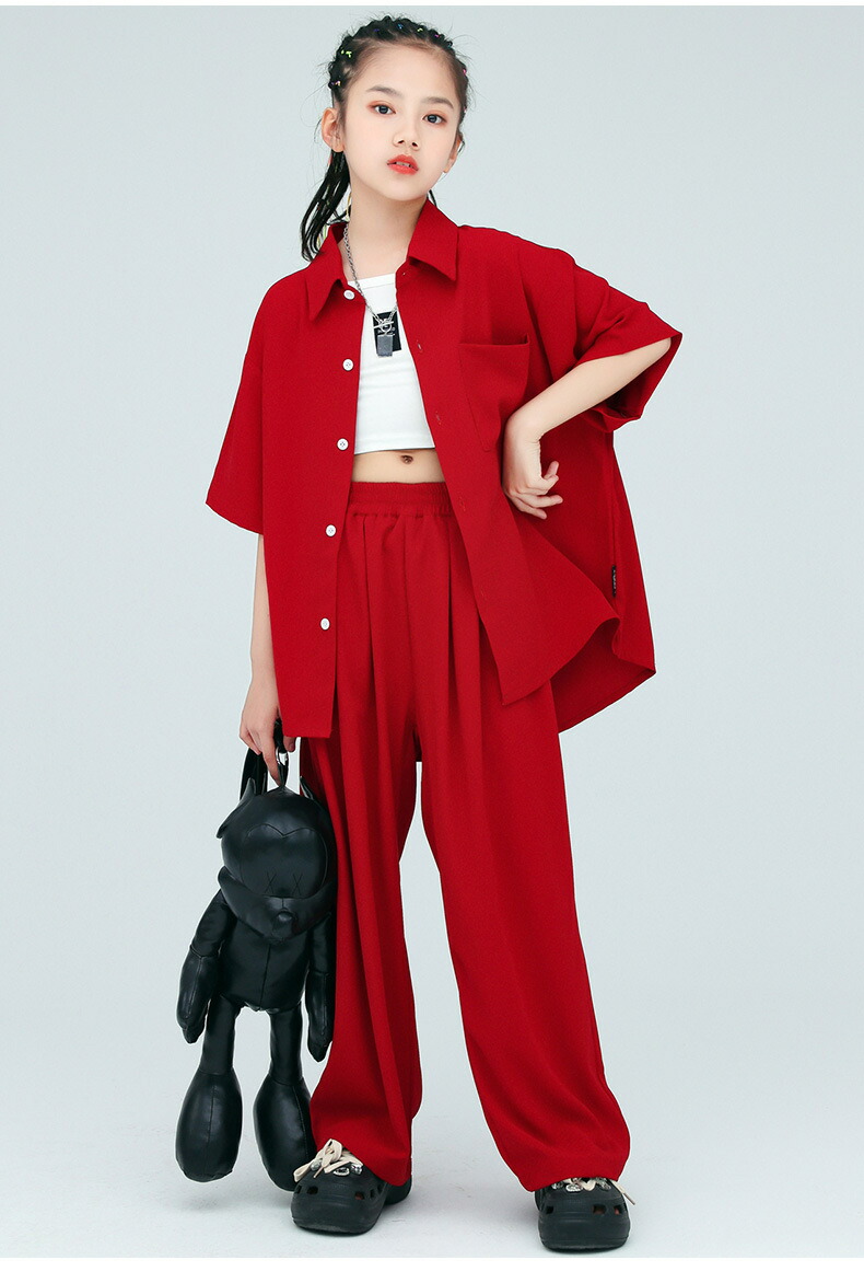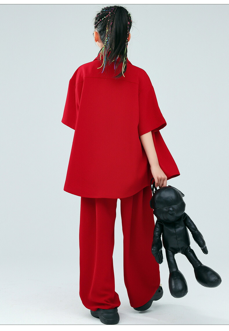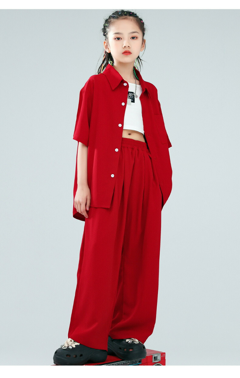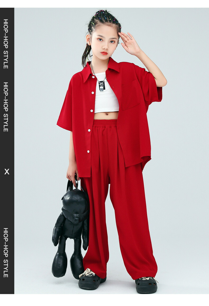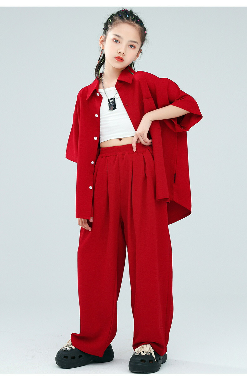 キッズ ダンス衣装 赤 レッド 半袖 キッズ ベビー マタニティ 新登場! シャツのみ パンツのみ シャツ+パンツ 110 120 130 140 150 160 170 180