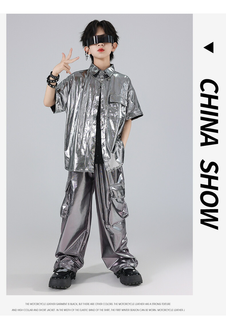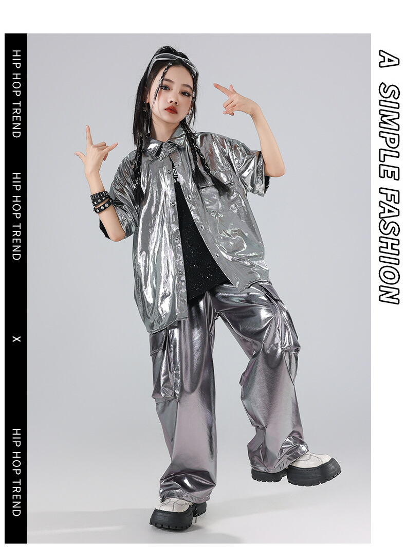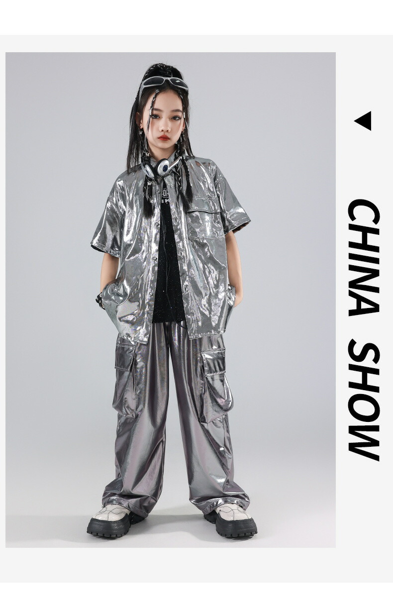 キッズ ダンス衣装 シルバー シャツ キッズ ベビー マタニティ 早い者勝ち トップスのみ パンツのみ トップス+パンツ トップス+パンツ+キラキラTシャツ 120 130 140 150 160 170 180