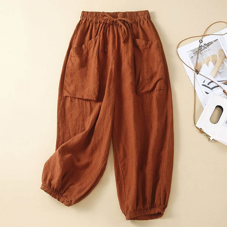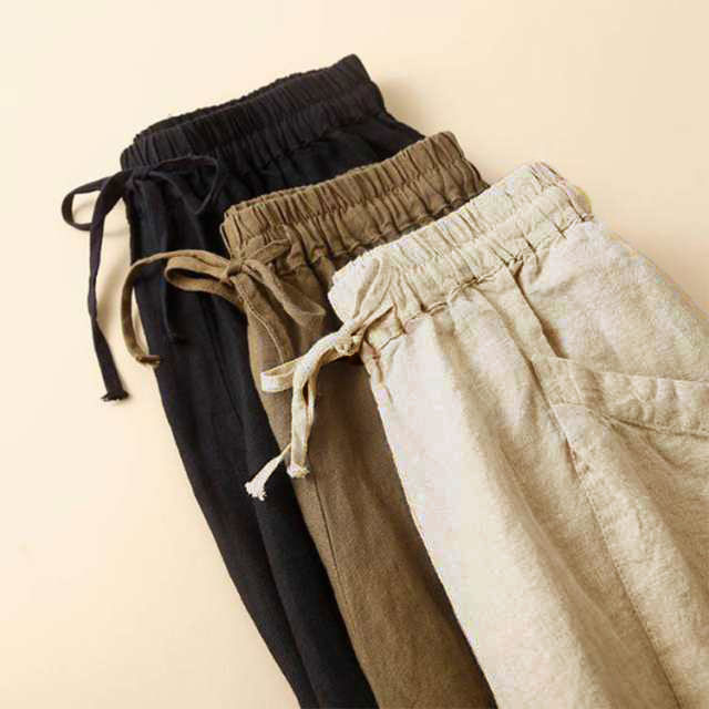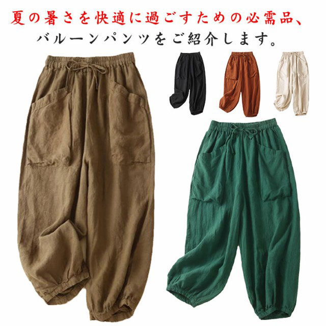 レディース バルーンパンツ 夏 綿麻風 ボトムス パンツ 新登場! ブラウン ベージュ ブラック オレンジ グリーン M L XL 2XL 3XL