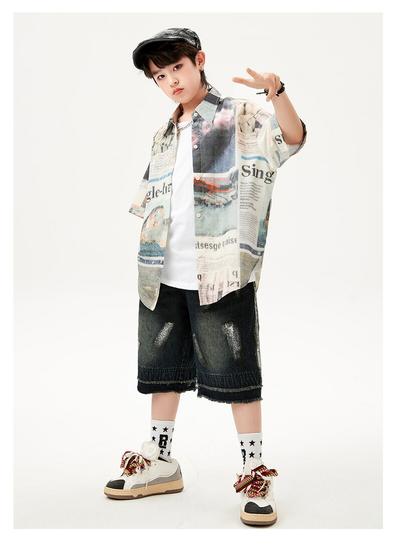 キッズ ダンス衣装 シャツ デニムパン キッズ スーツ カジュアルセットアップ カジュアルパンツセット 続々登場 シャツ パンツ シャツ+パンツ シャツ+タンクトップ+パンツ 110 120 130 140 150 160 170 180