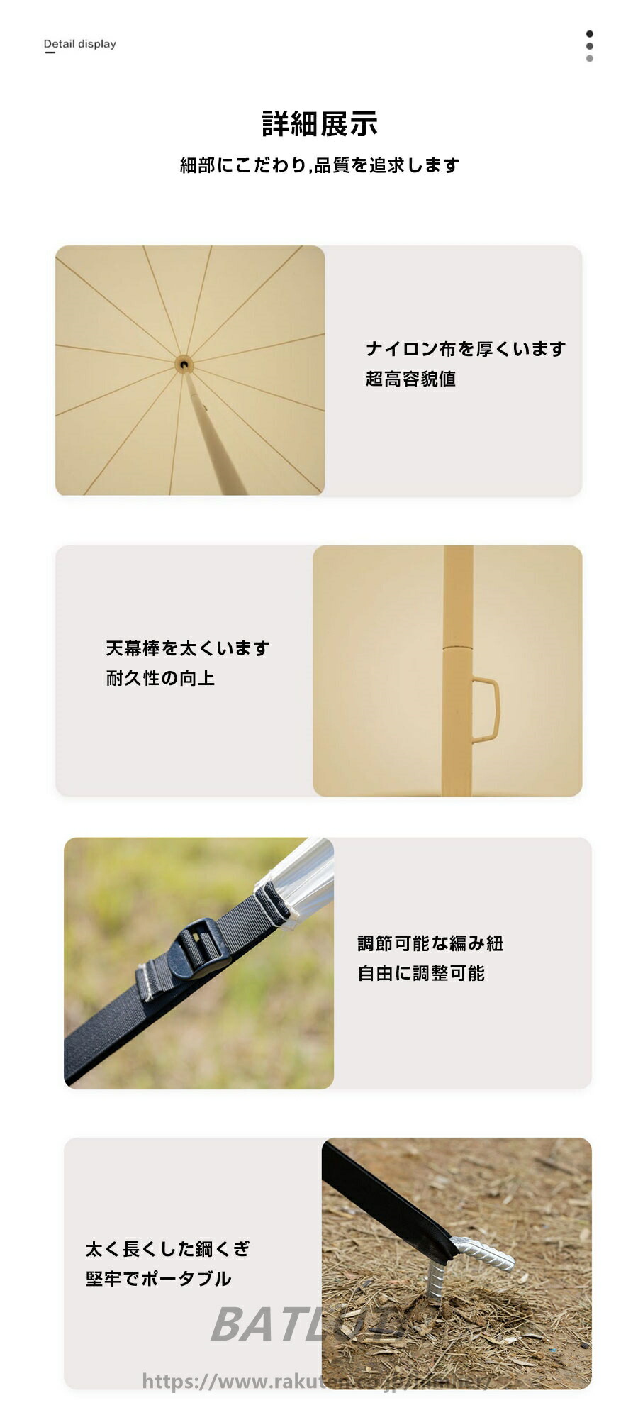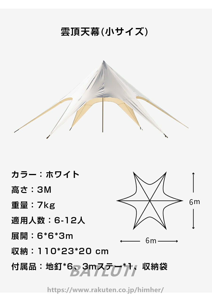 タープテント 6m 簡単 大型 軽量 スポーツ アウトドア 人気 ホワイト ベージュ