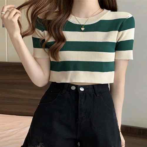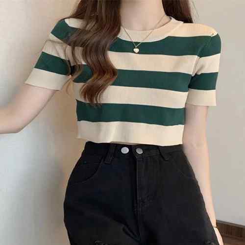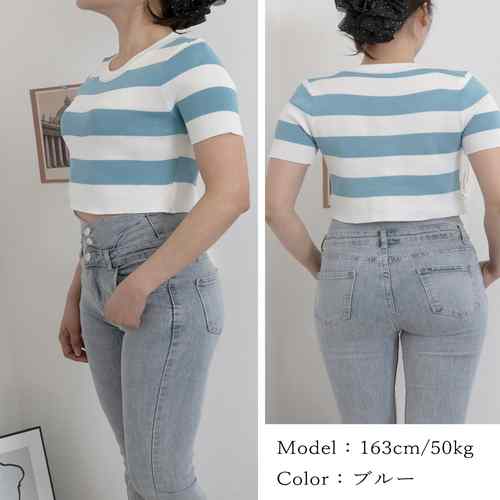 ショート丈ニットトップス へそ出し レ トップス Tシャツ カットソー 特集 ブラック ブルー ダークグリーン イエロー