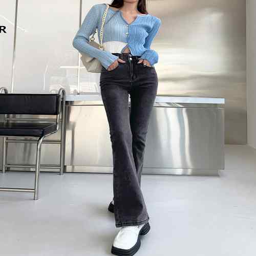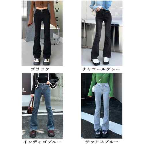 ストレッチパンツ 韓国風 レディース ボトムス パンツ 続々登場 サックスブルー ブラック インディゴブルー チャコールグレー 28 29 30