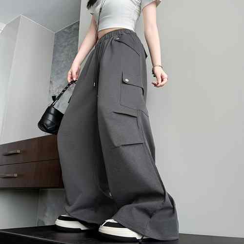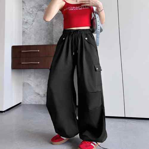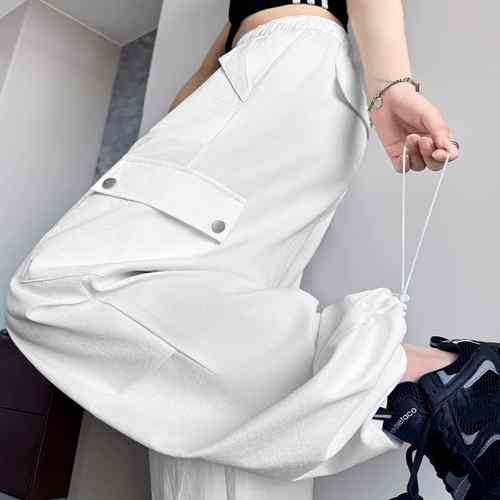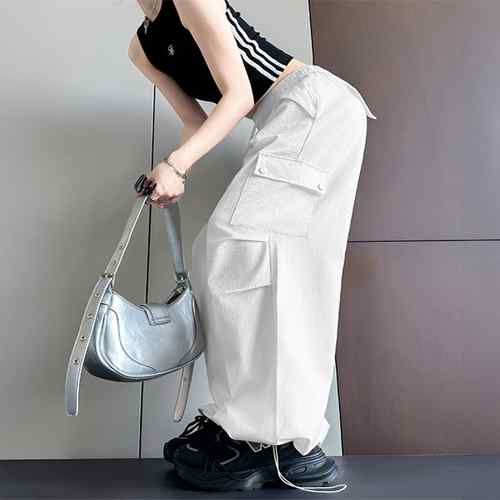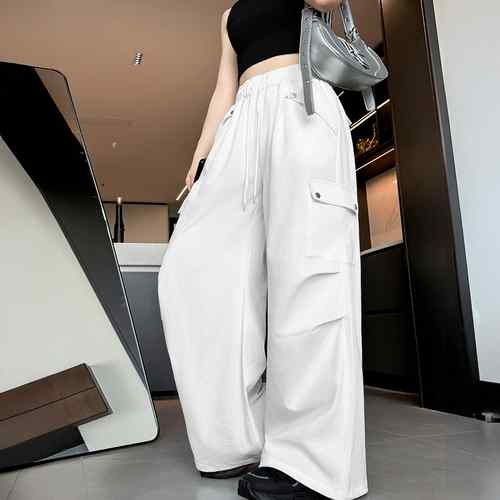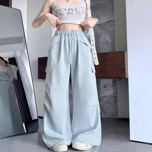 ハイウエスト ゆったり ワークパンツ レディースファッション 新登場! ブラック ライトブルー ホワイト
