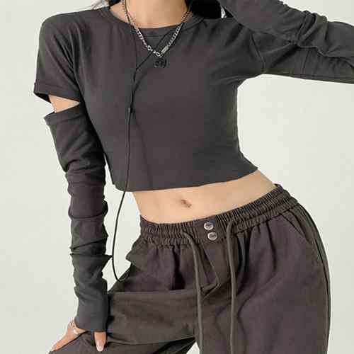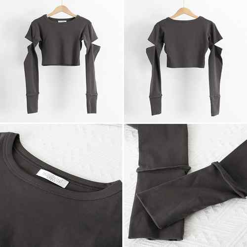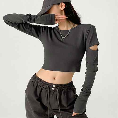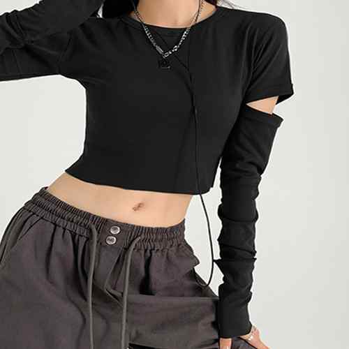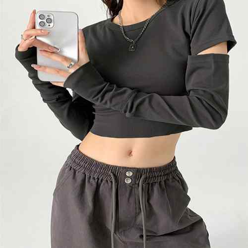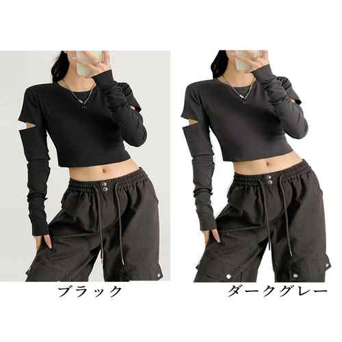 レディース ショート丈tシャツ ラウン トップス Tシャツ カットソー 通販 ブラック ダークグレー L M