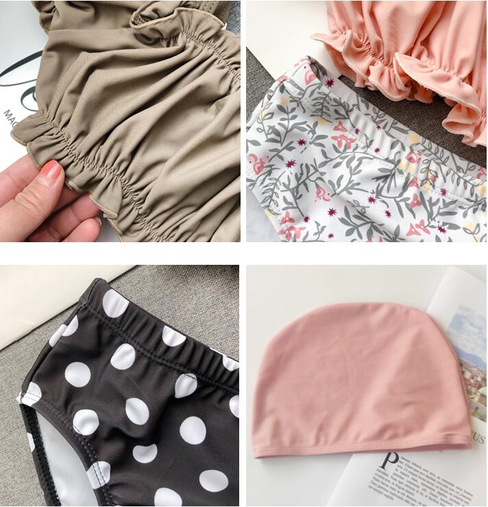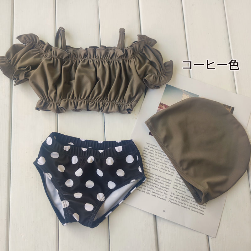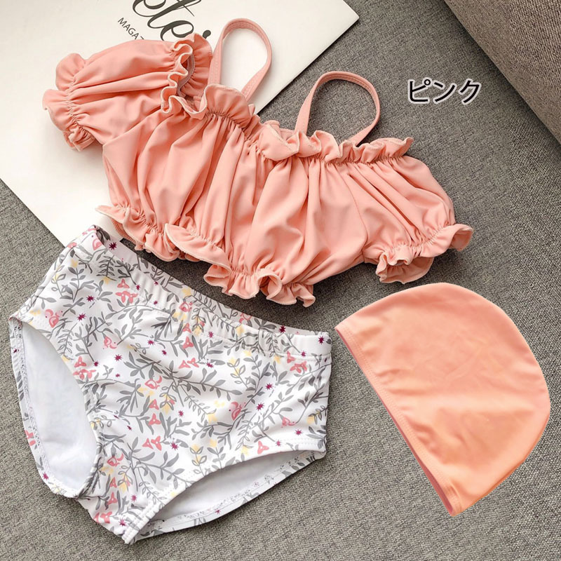 女の子水着 3点セット トップス パン キッズ 水着 新登場! コーヒー色 ピンク S M L XL 2XL