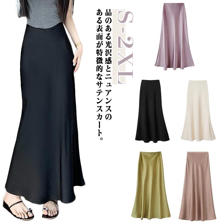 フレアスカート マーメイドスカート ロ レディースファッション 人気 ブラック ベージュ ピンク グリーン シャンパン色 S M L XL 2XL