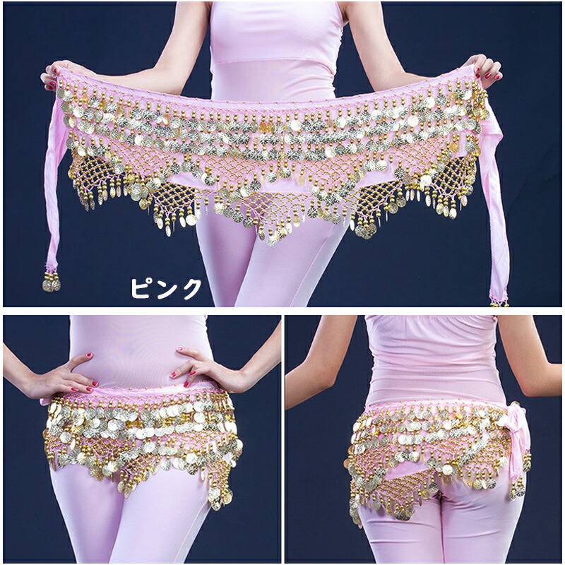 コインヒップスカーフ ベリーダンス衣装 スポーツ アウトドア 早い者勝ち ブルー ホワイト イエロー ブラック&ゴールド ブラック&シルバー レッド ローズ ピンク 水色