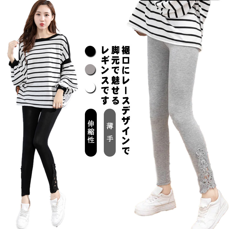 レギンス ストレッチ レース 黒 ジュ レディース 靴下 レッグウェア スパッツ レギンス 早い者勝ち ブラック ホワイト グレー L XL 2XL 3XL 4XL