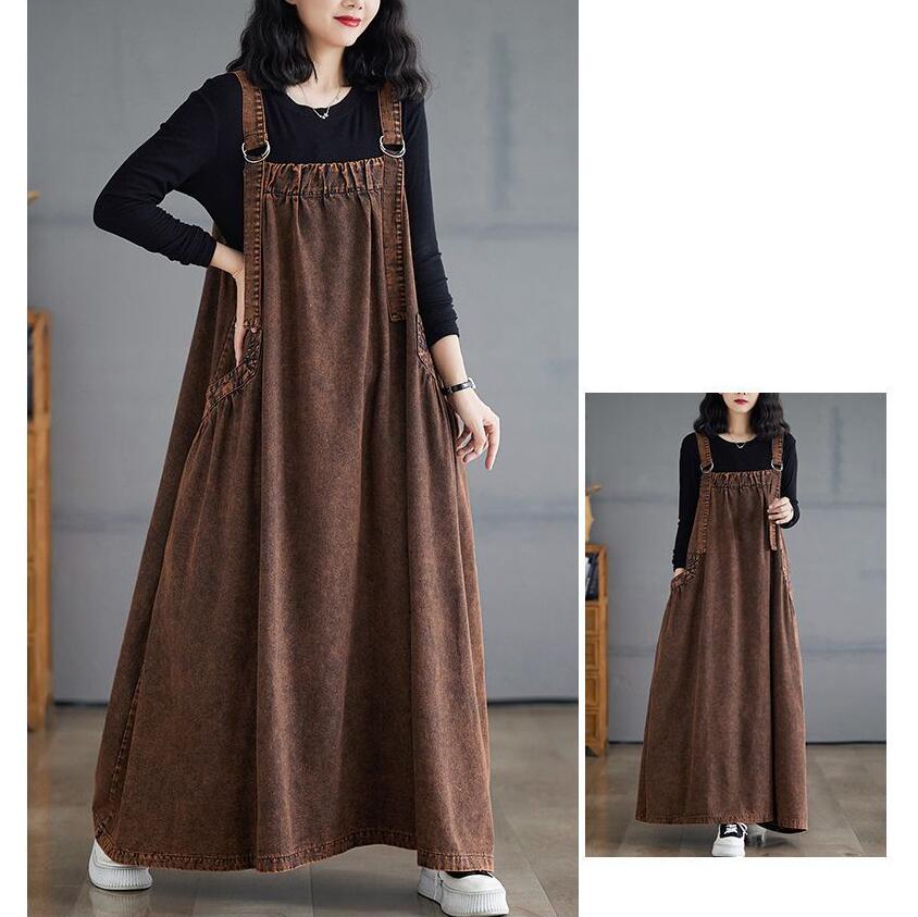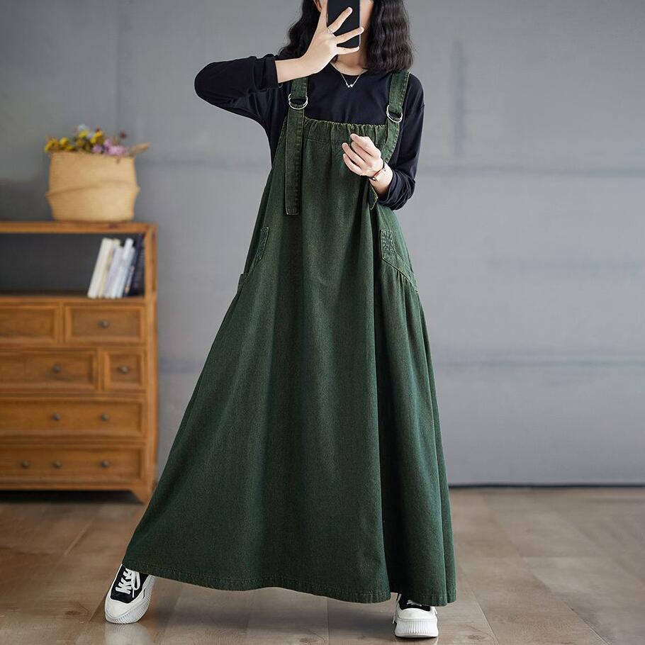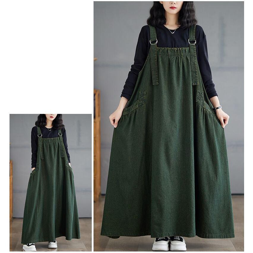 ワンピース デニム ジャンパースカート ブルー グリーン ブラウン M L 2L 3L
