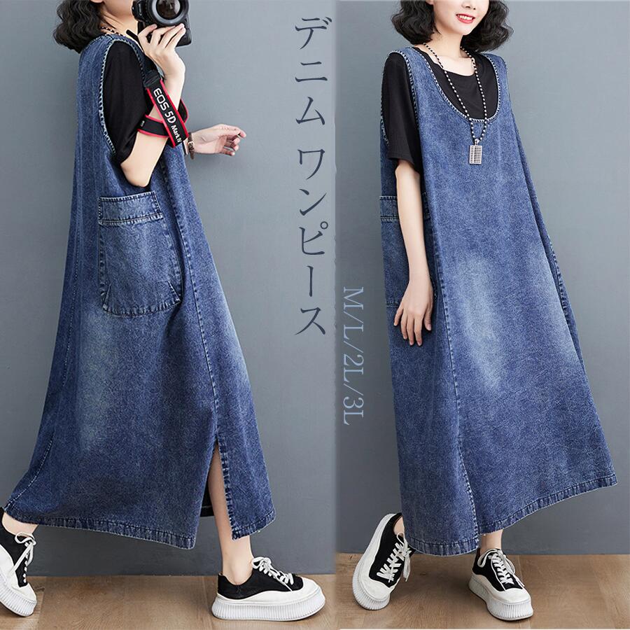 デニムワンピース ガウンワンピース シ M L 2L 3L