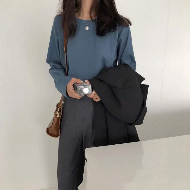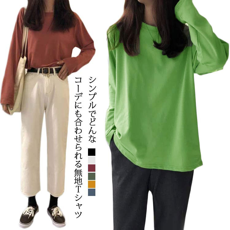 ゆったり きれいめ ロンT 無地 シン レディースファッション 通販 ホワイト ブラック レッド ブルー イエロー グリーン M L XL 2XL