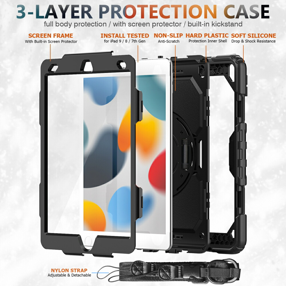 ipad ケース 耐衝撃 ハイブリット iPad10(10.9-2022) iPad9/iPad8/iPad7(10.2) iPad6/iPad5/Pro9.7/Air2 Air5/Air4/Pro11(第4/3/2/1世代) iPadmini6(2021年8.3インチ) iPadmini5/mini4兼用 ブラック ダークブルー オレンジ レッド グリーン パープル ブルー ローズピンク
