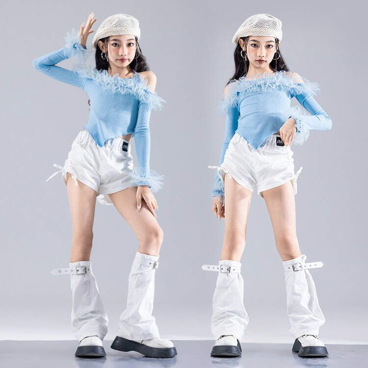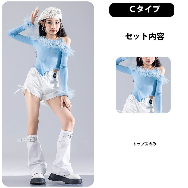 キッズダンス衣装 セットアップ ショートトップス キッズ ダンス 衣装 腰巻風 フットカバー バラ売り 単品販売 長袖 Tシャツ スカート バギーパンツ 長ズボン ヒップ ショートパンツ