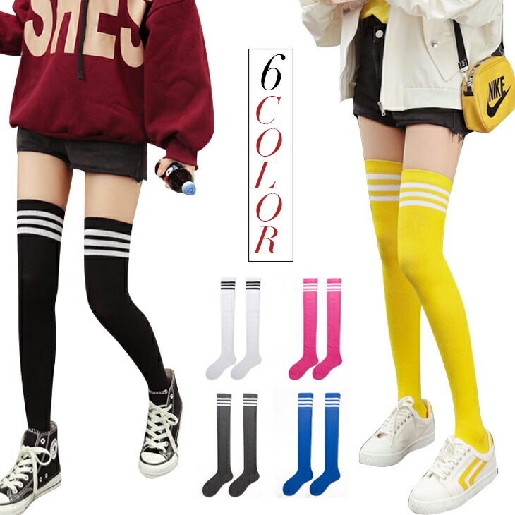 6カラー ニーハイソックス レディース インナー 下着 ナイトウエア 早い者勝ち ブラック ホワイト イエロー フーシャピンク グレー ブルー