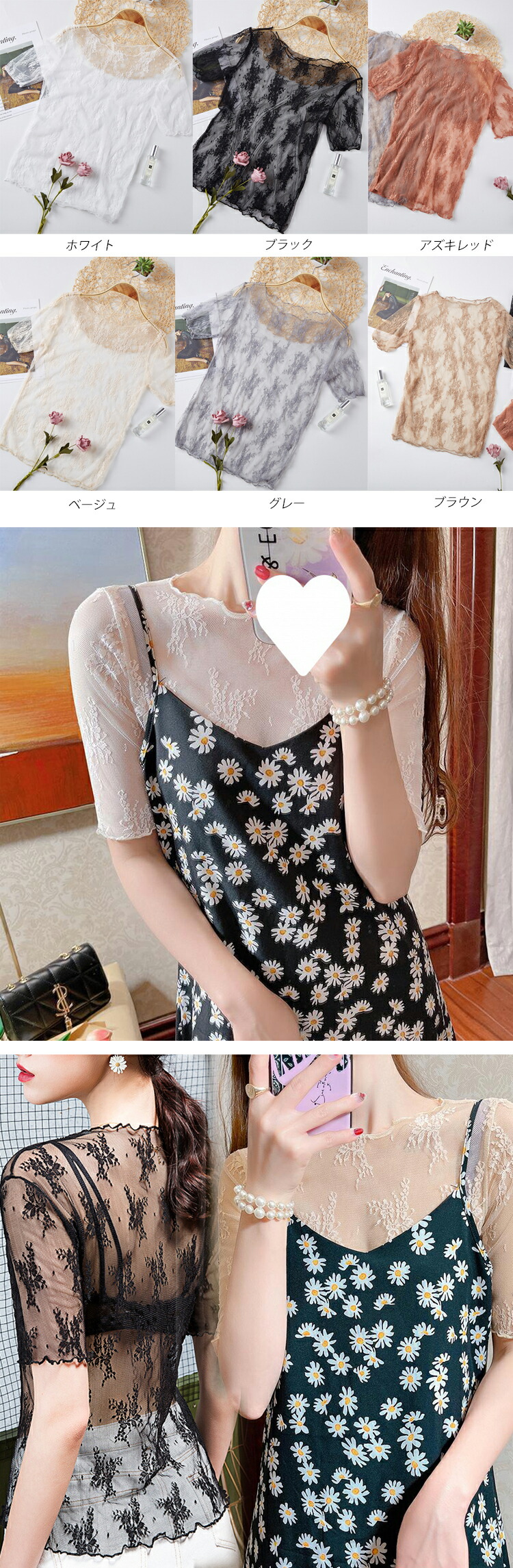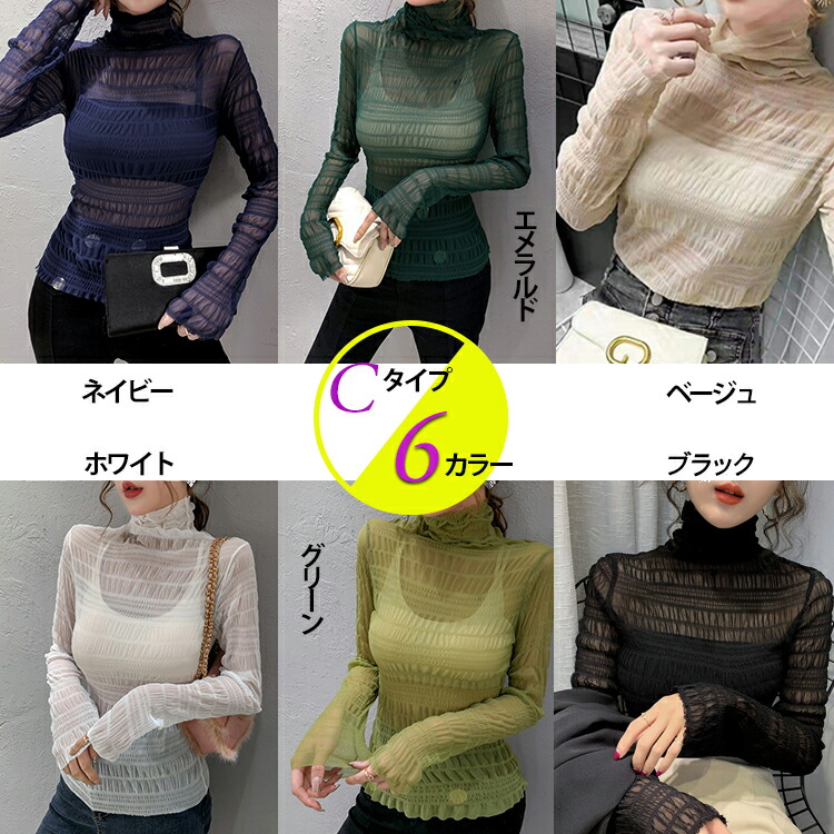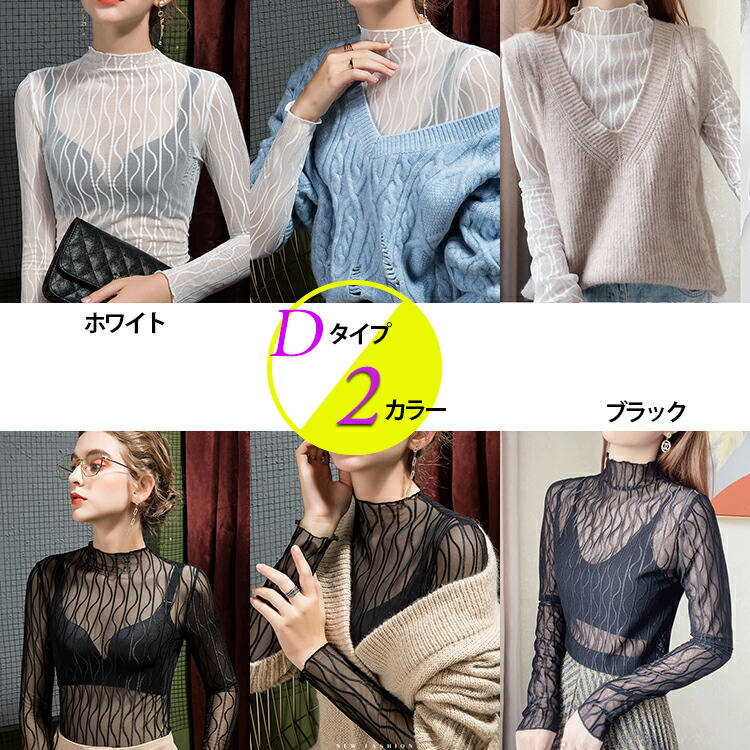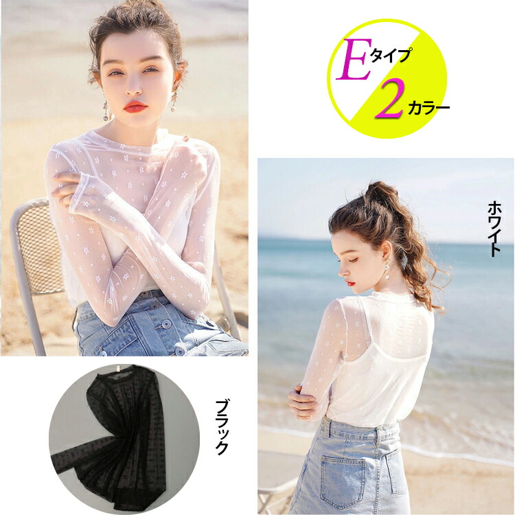 春夏 レディース トップス シアートップス レース チュール シースルートップス 長袖 刺繍 花柄 インナー ハイネック 肌魅せ タートルネック レイヤード UV対策 キレイめ 華やか 透 日焼け対策