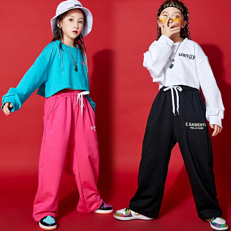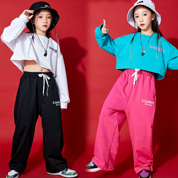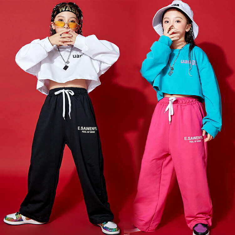 キッズダンス衣装 ショート丈 長袖トップス スウェットパンツ 別売り キッズダンス キッズボトムス 長ズボン キッズトップス 長袖 クルーネック へそ出し ヒップホップ ジュニア 派手 映 レッスン着