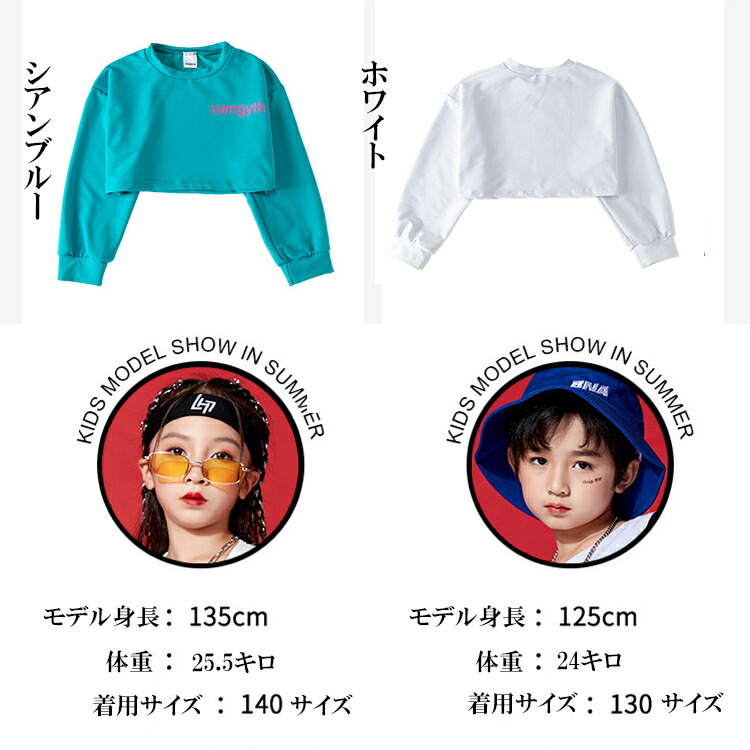 キッズダンス衣装 ショート丈 長袖トッ キッズ ベビー マタニティ 新登場! 【トップス】シアンブルー 【トップス】ホワイト 【パンツ】ブラック 【パンツ】フーシャピンク 【パンツ】ホワイト 110 120 130 140 150 160 170 180