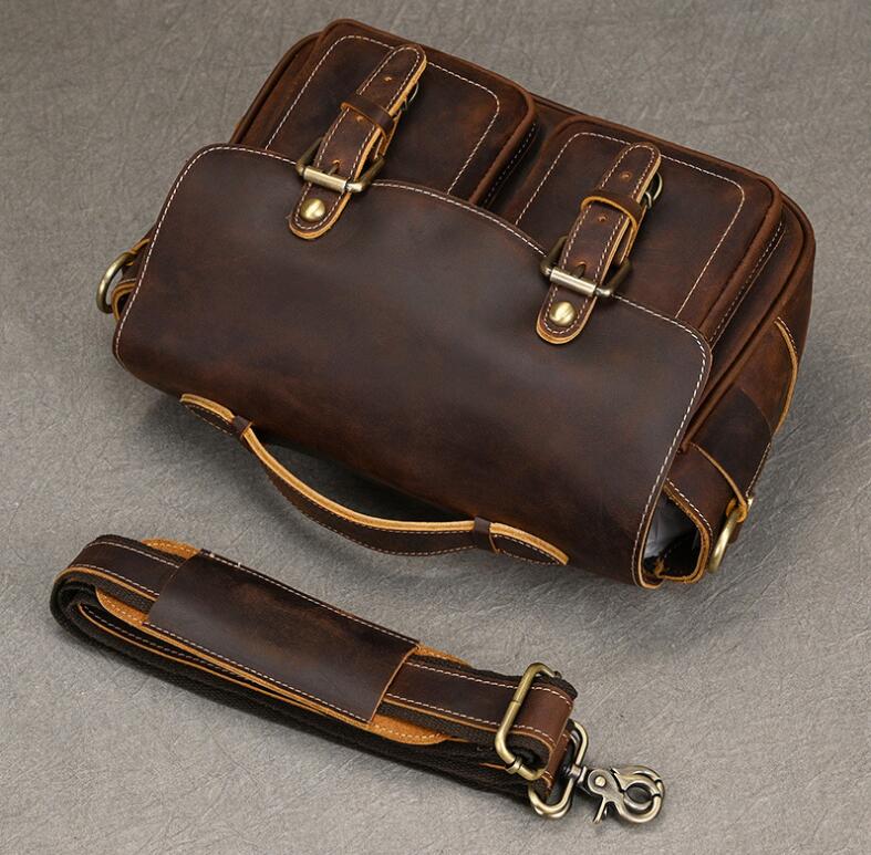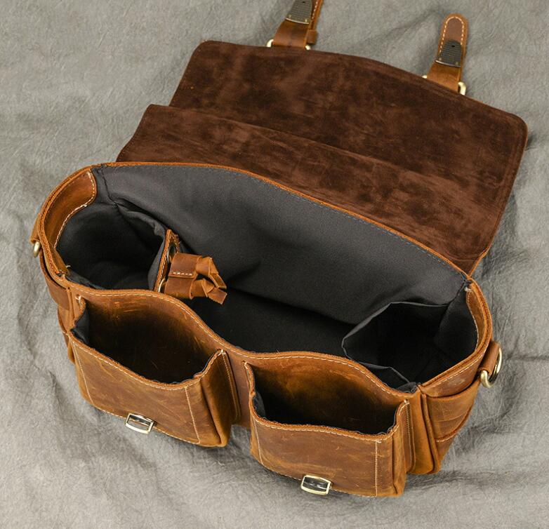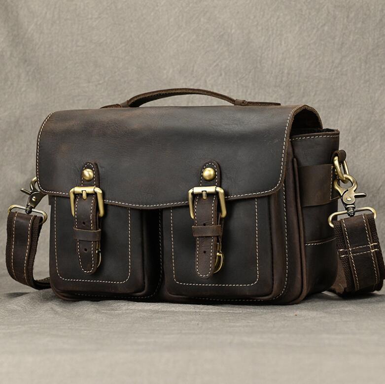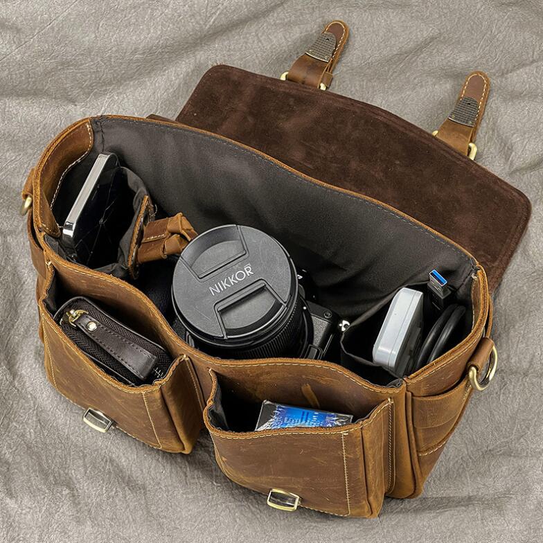 アンティーク調 一眼レフ バッグ レザ ダークブラウン ブラウン コーヒー色