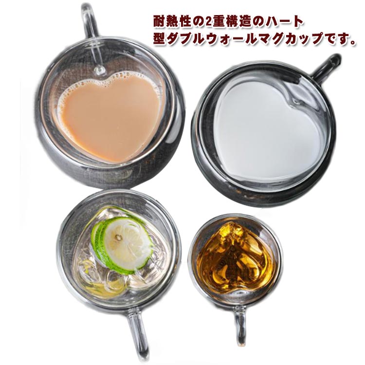 ハート ダブルウォールグラス 取っ手付 キッチン用品 食器 調理器具 豊富 80ml 180ml 260ml 280ml