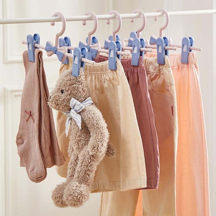 ズボンハンガー 蝶結び ハンガー 子供 洗濯用品 物干しハンガー 豊富 ピンク ブルー