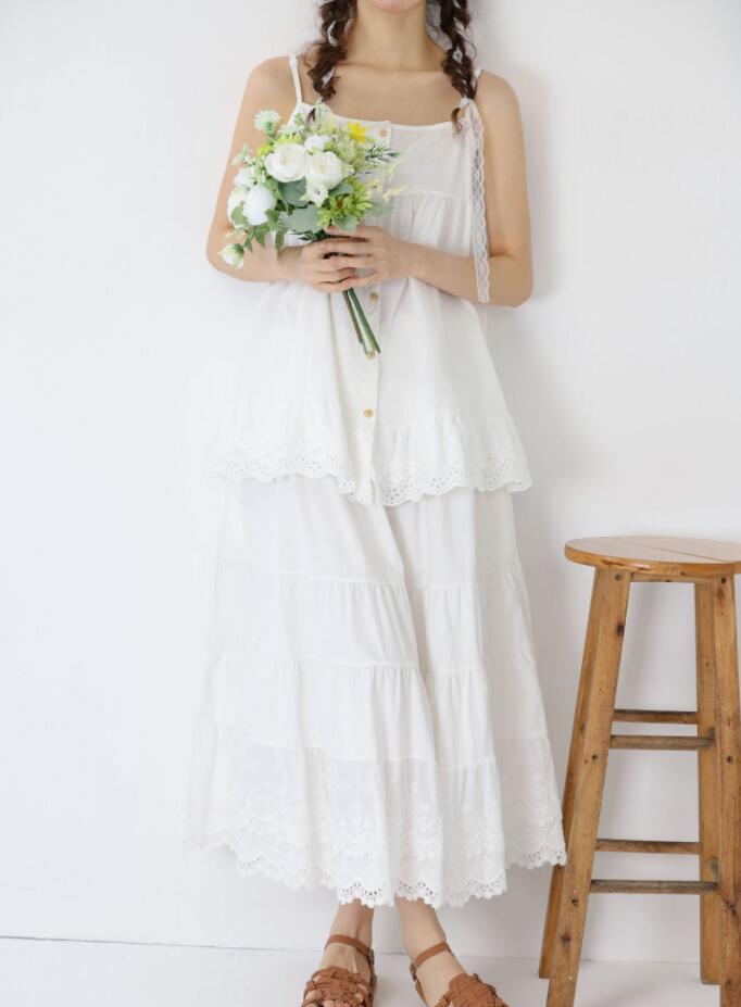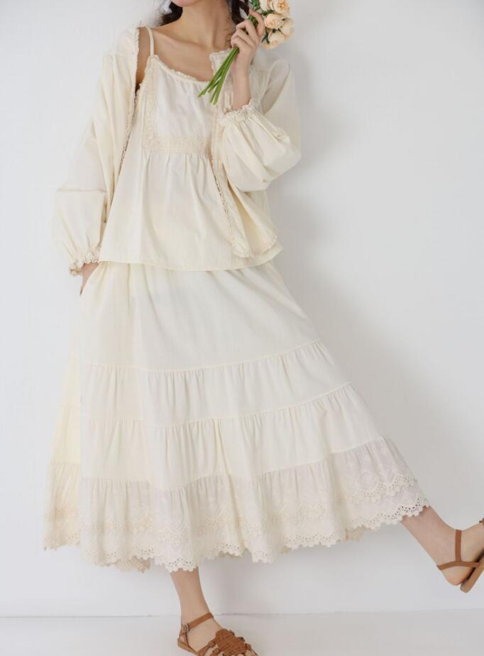レーススカート 森ガール ペチコート ボトムス スカート 人気 ホワイト ベージュ ブラック