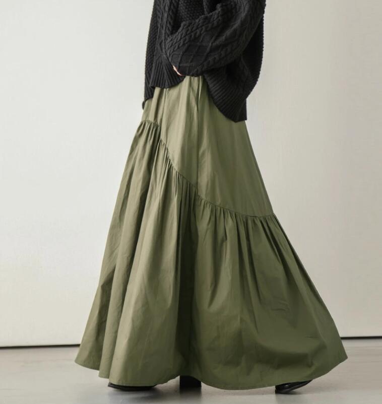 スカート マキシ丈 ロングスカート 大 ボトムス スカート 通販 グリーン ベージュ ブラック グレー M L