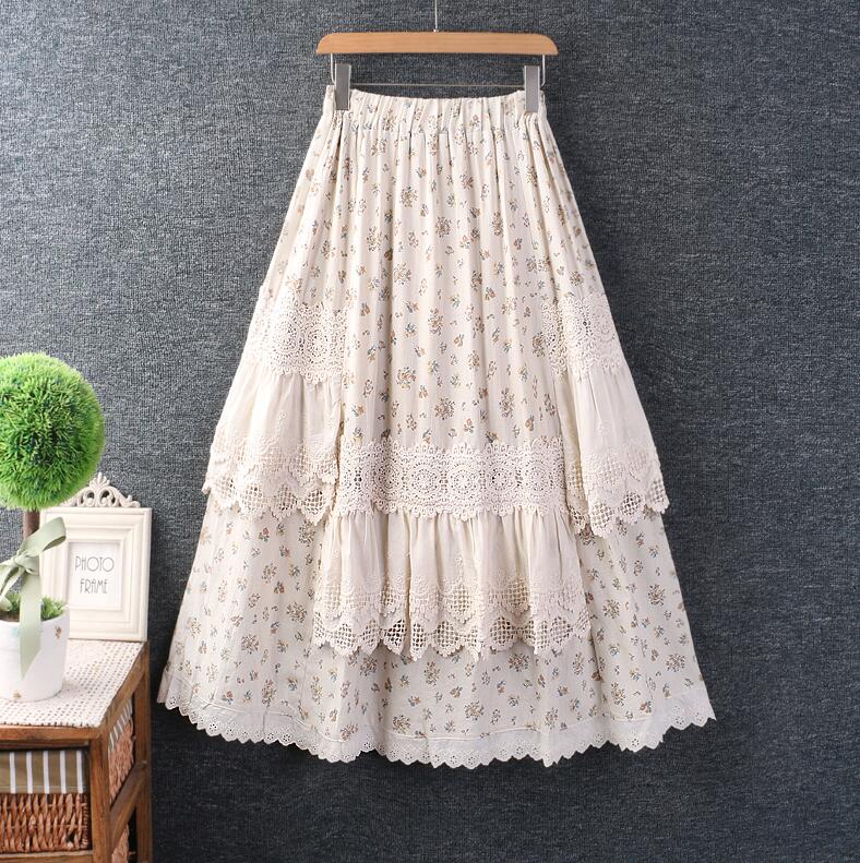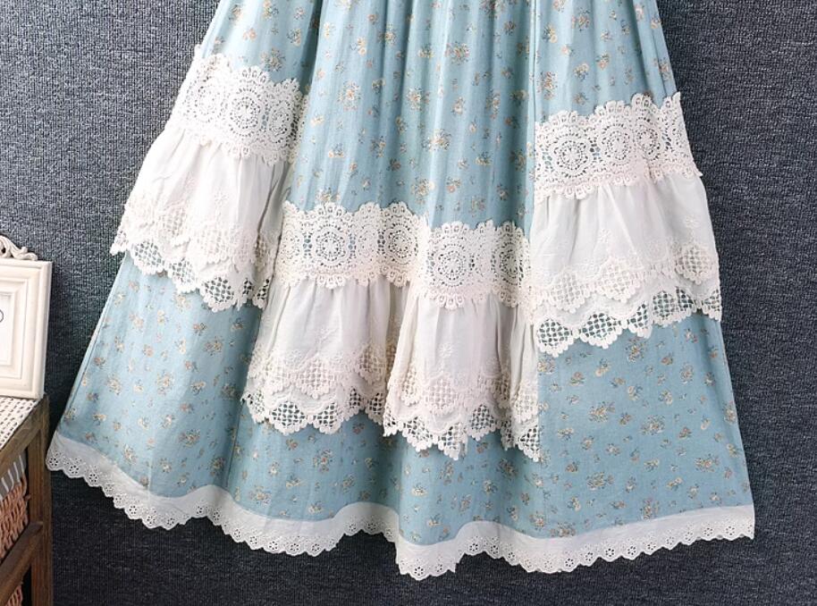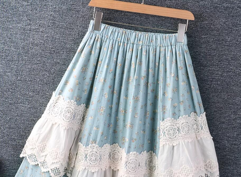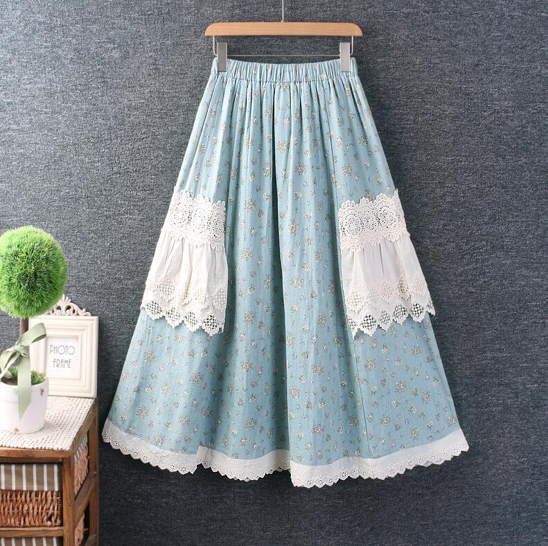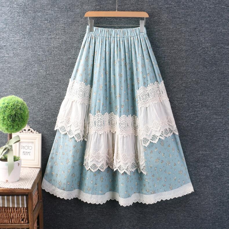 レーススカート 森ガール 花柄スカート ボトムス スカート 通販 ベージュ ブルー