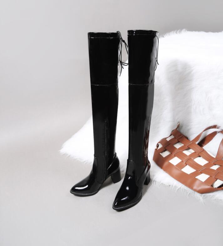 レディースブーツニーハイブーツエナメル 靴 人気 22cm 22.5cm 23cm 23.5cm 24cm 24.5cm 25cm 25.5cm 26cm 26.5cm 27cm 27.5cm 28cm 28.5cm 29cm ブラックエナメル ブラックスエット