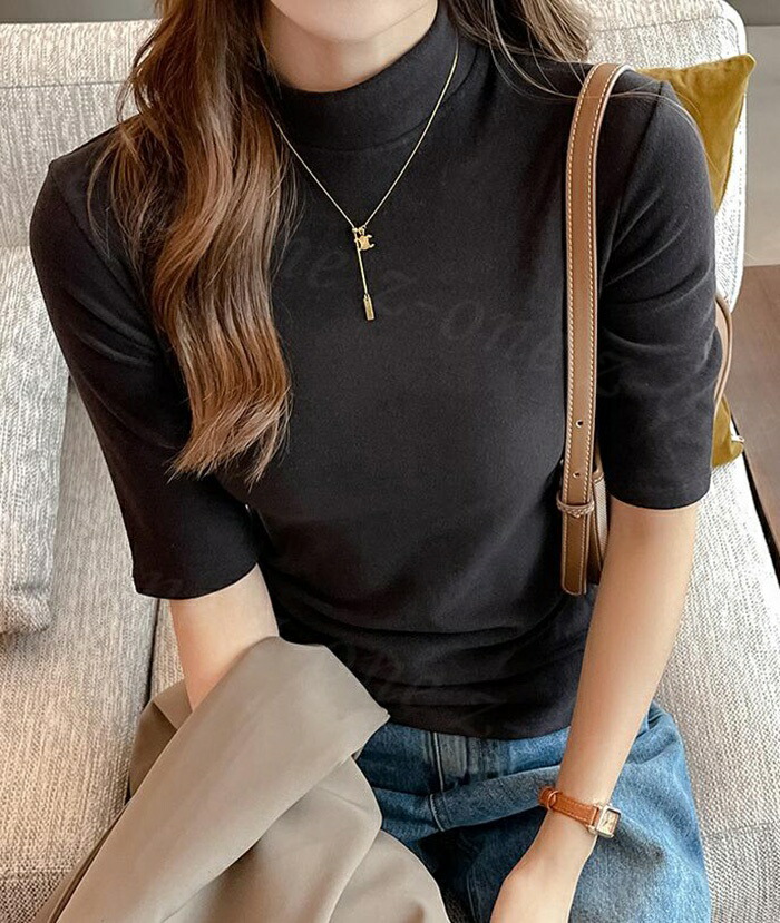 40%OFF tシャツ カットソー 首 トップス Tシャツ カットソー 人気 ブラック ホワイト ベージュ ブラウン ダークグレー キャメル M L XL