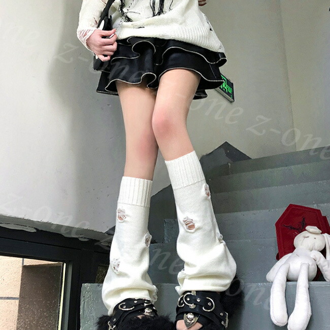 レッグウォーマー 1足 靴下 レディー レディース 靴下 レッグウェア レッグウォーマー 豊富 ホワイト グレー ブラック(バイカラー) ホワイト(ダメージ加工) ブラック(ダメージ加工)
