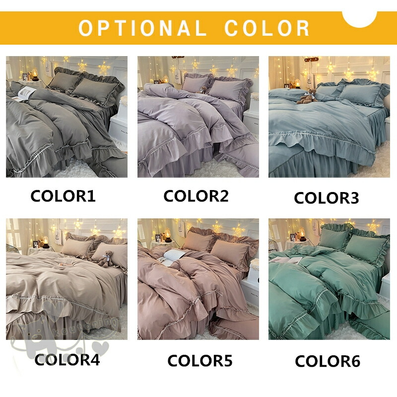 布団カバー ベッドスカート フリル付き 寝具 寝具カバー シーツ 寝具カバーセット 通販 Type-Aシングル(3点セット) Type-Bシングル(4点セット) COLOR1 COLOR2 COLOR3 COLOR4 COLOR5 COLOR6