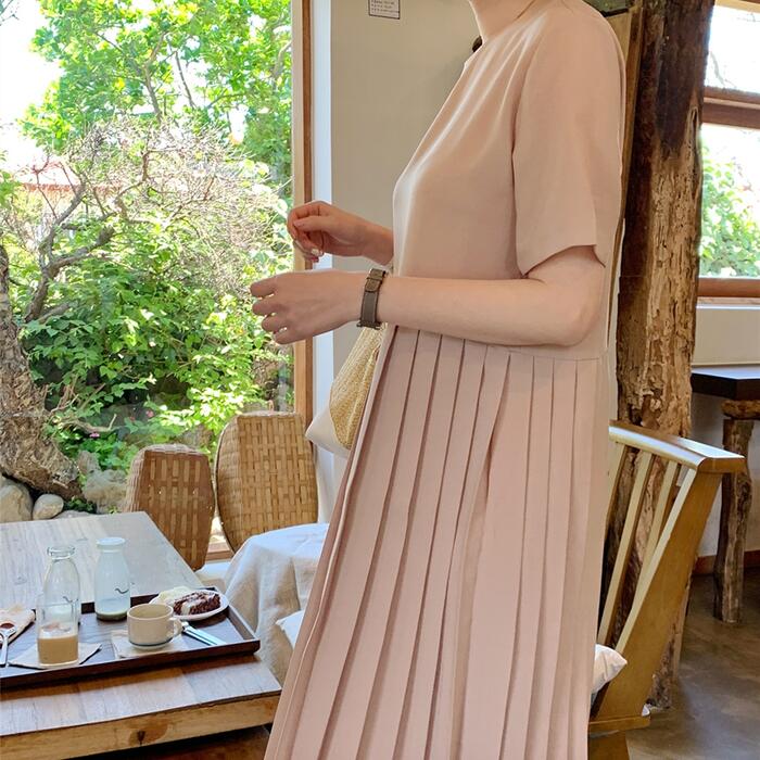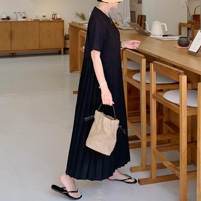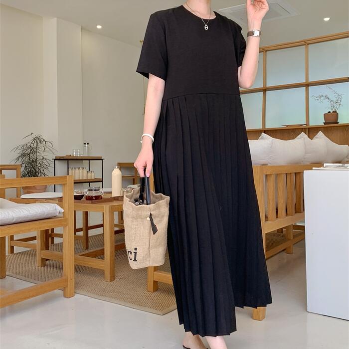 ワンピース プリーツ 切り替え ナチュ レディースファッション 新登場! ブラック アプリコット S M L XL