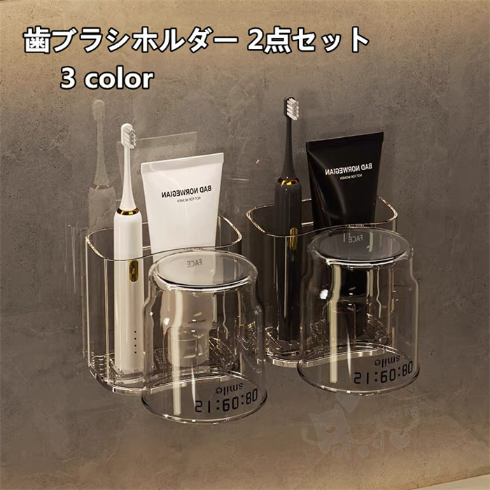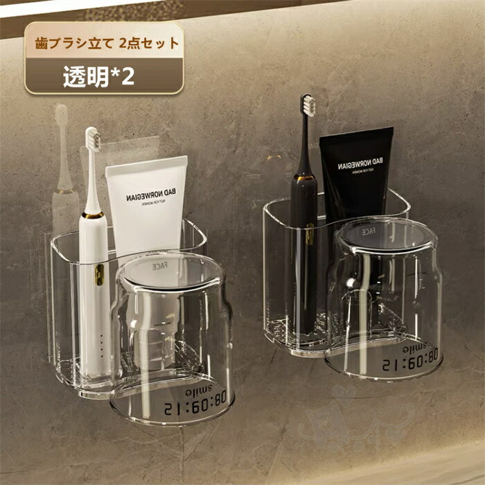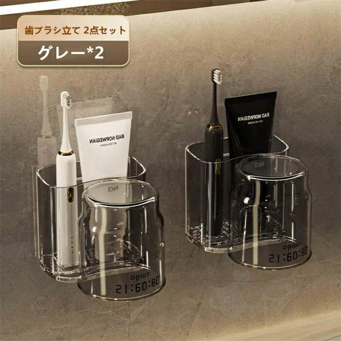 歯ブラシホルダー 2点セット 歯ブラシ 日用品雑貨 文房具 手芸 特集 透明+グレー 透明*2 グレー*2
