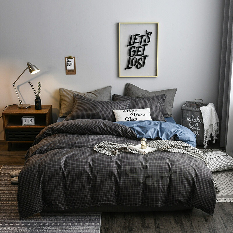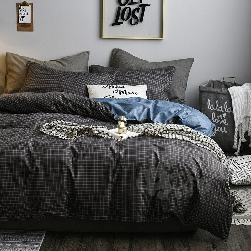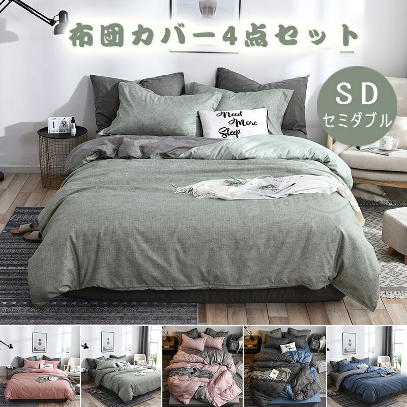 布団カバー 4点セット セミダブル セ 寝具 掛け敷き布団セット 続々登場 チェック柄-グレー チェック柄-ピンク ブルー グリーン ピンク