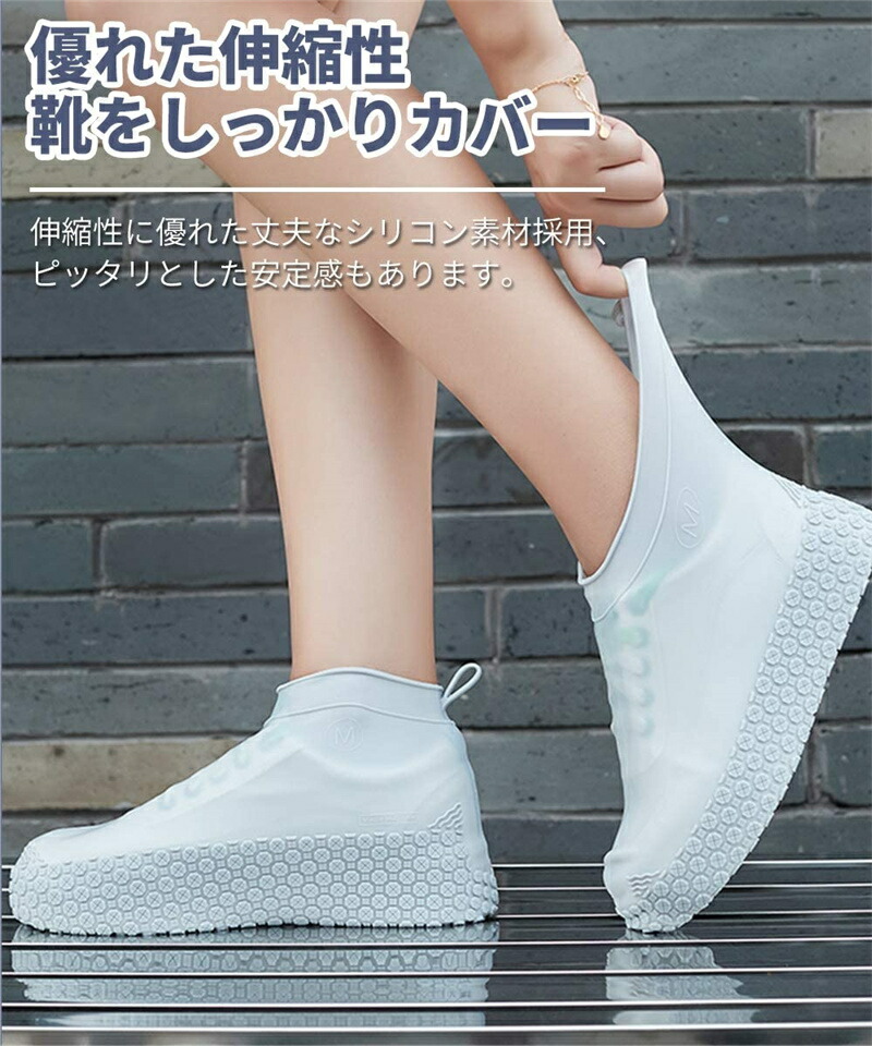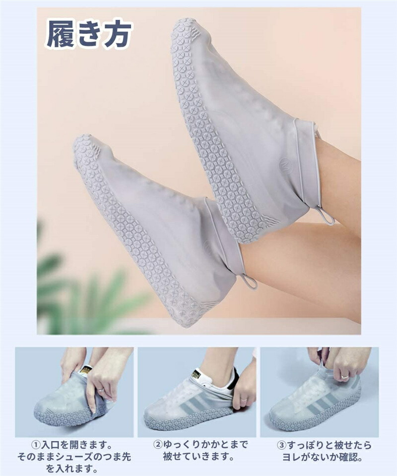 シューズカバー 防水 滑り止め 靴用防 ホワイト ライトグレー ダークグレー ブルー ライトピンク オレンジ ブラック ネイビー ピンク S M L