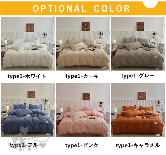 布団カバー 3.4点セット 敷布団カバ インテリア 寝具 収納 新登場! Type-Aシングル Type-Aセミダブル Type-Aダブル Type-Bシングル Type-Bセミダブル type1-ホワイト type1-カーキ type1-グレー type1-ブルー type1-ピンク type1-キャラメル type2-ホワイト type2-カーキ type2-グレー type2-ブルー type2-ピンク type2-キャラメル