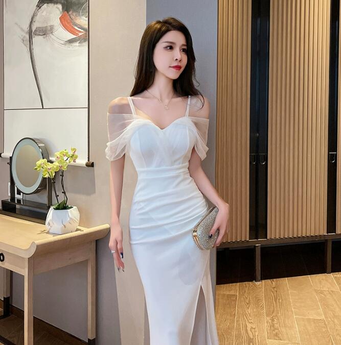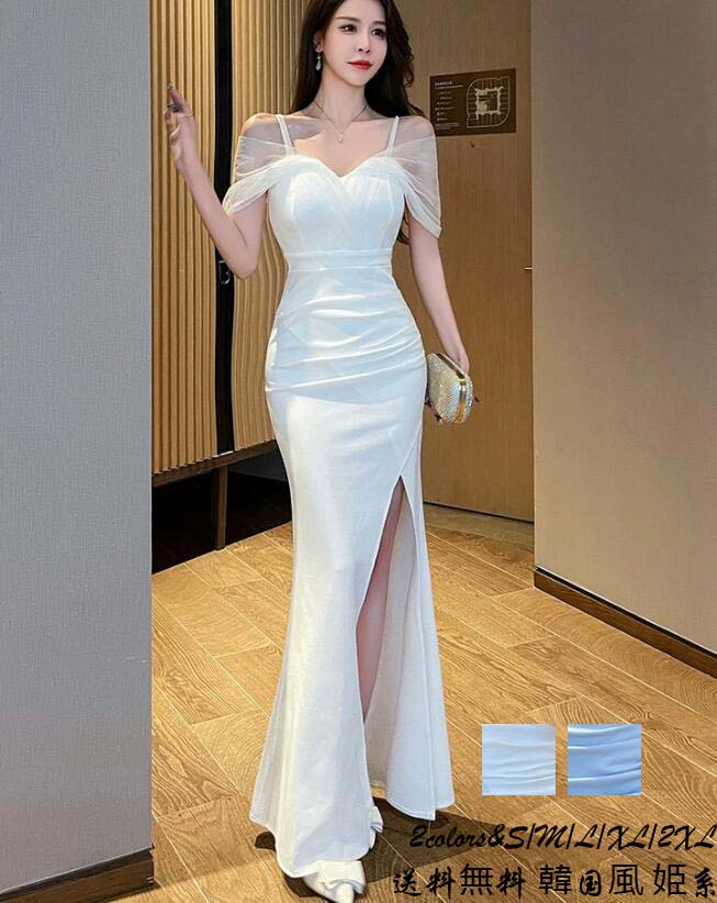 お嬢様 着痩せ ロングドレス 優雅 イ ドレス 新登場! ブルー ホワイト S M L XL 2XL