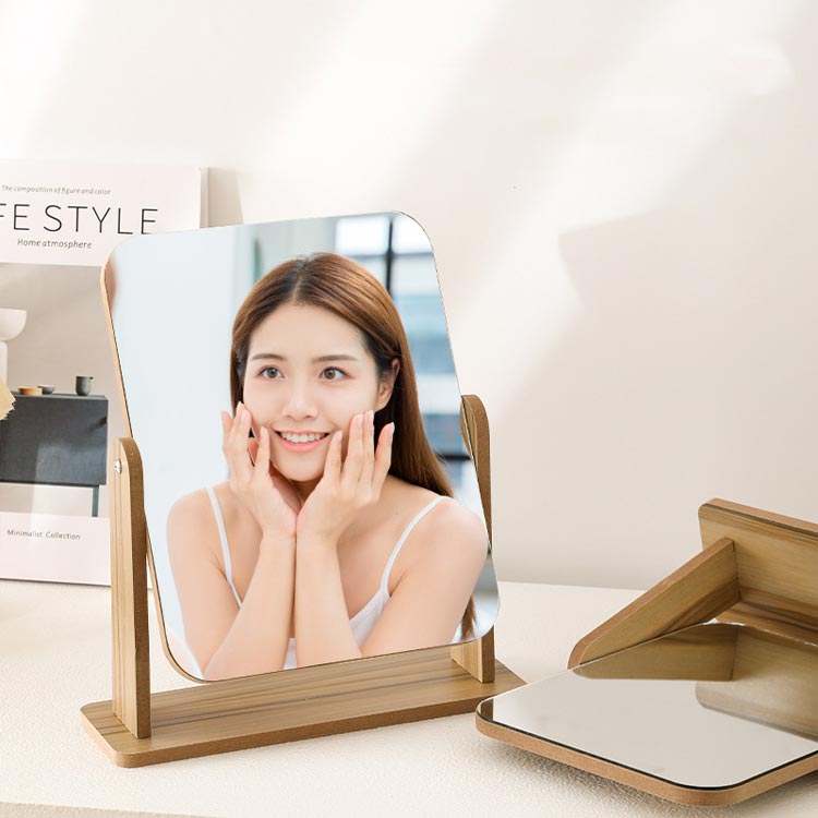 卓上ミラー 木製 スタンドミラー 化粧 S M L