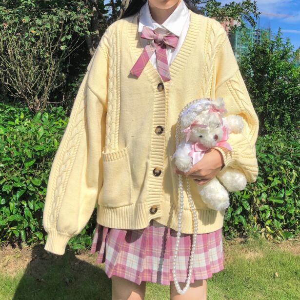 スクール カーディガン Vネック カー レディースファッション 続々入荷中 ホワイト イエロー S M L