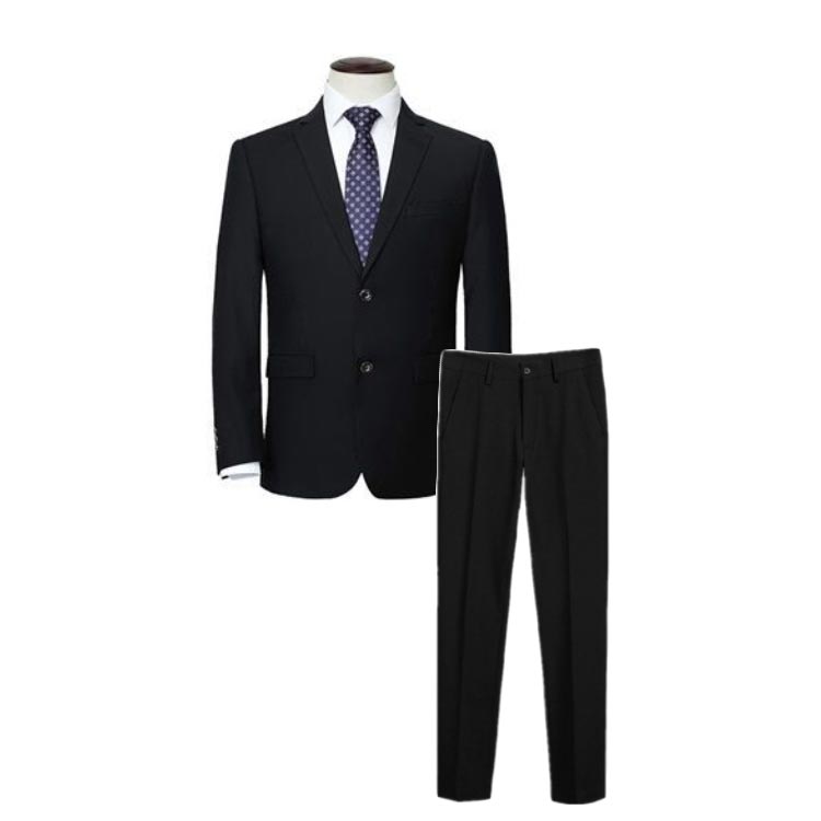 オールシーズン対応で、シワになりにくいポリエステル素材を使用した丈夫で軽いフォーマルスーツ。