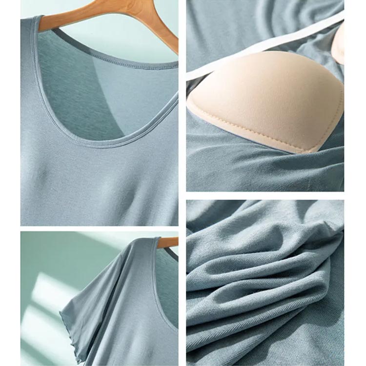 カップ付き ルームウェア 夏 半袖 ワ レディースファッション 続々登場 ブラック ダークグレー ブルー ピンク シャンパン色 グリーン 40-65kg 65-80kg