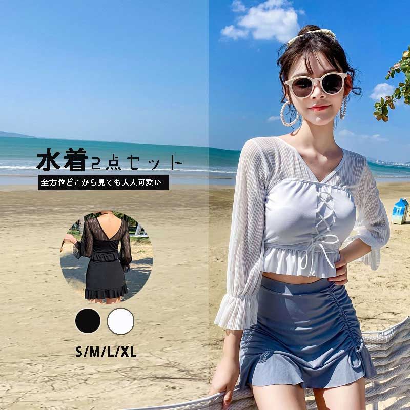 水着 レディース 体型カバー ラッシュ 水着 新作 ホワイト ブラック S M L XL