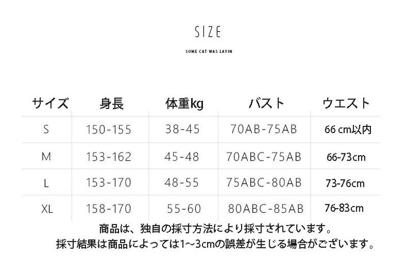 ●水着本体は伸ばせば伸びる物ですし、個体差もございますので、上記の参照サイズ表と平置サイズ表をご参考にしてくださいませ。