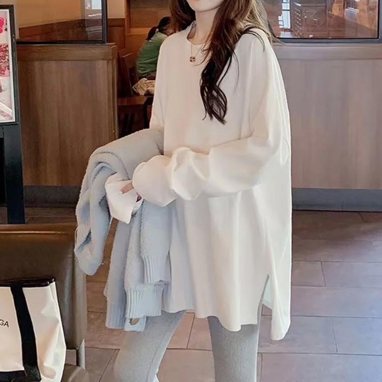 トップス シンプル レディース ロンT レディースファッション 特集 ホワイト ブラック ホワイト(サイドスリット) M L XL 2XL 3XL