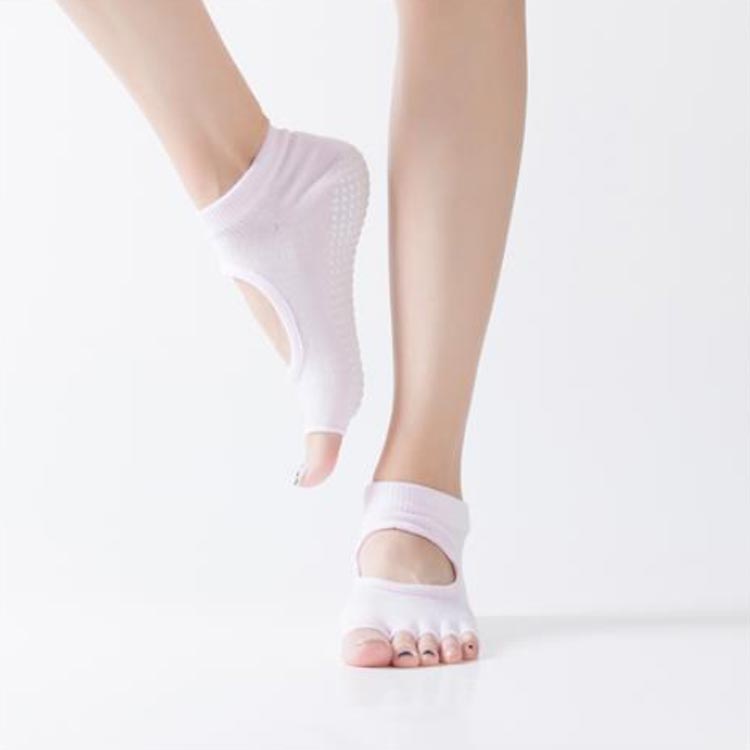 【通気性と快適性、 ハーフトゥ5本指のデザインにより、つま先がより自然に動きます。 甲のオープンデザインと組み合わせることで、ヨガつま先ソックスの通気性が向上し、より快適な着用体験が得られます。